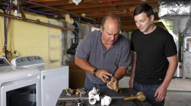 Richard replaces piping; Ross discusses indoor air quality; Tom quiets a squeaky door.