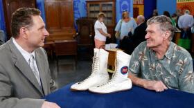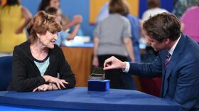 Mark L. Walberg and appraiser Ken Farmer discuss Appalachian musical instruments.