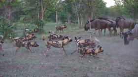 Wild Dogs Take on Wildebeest